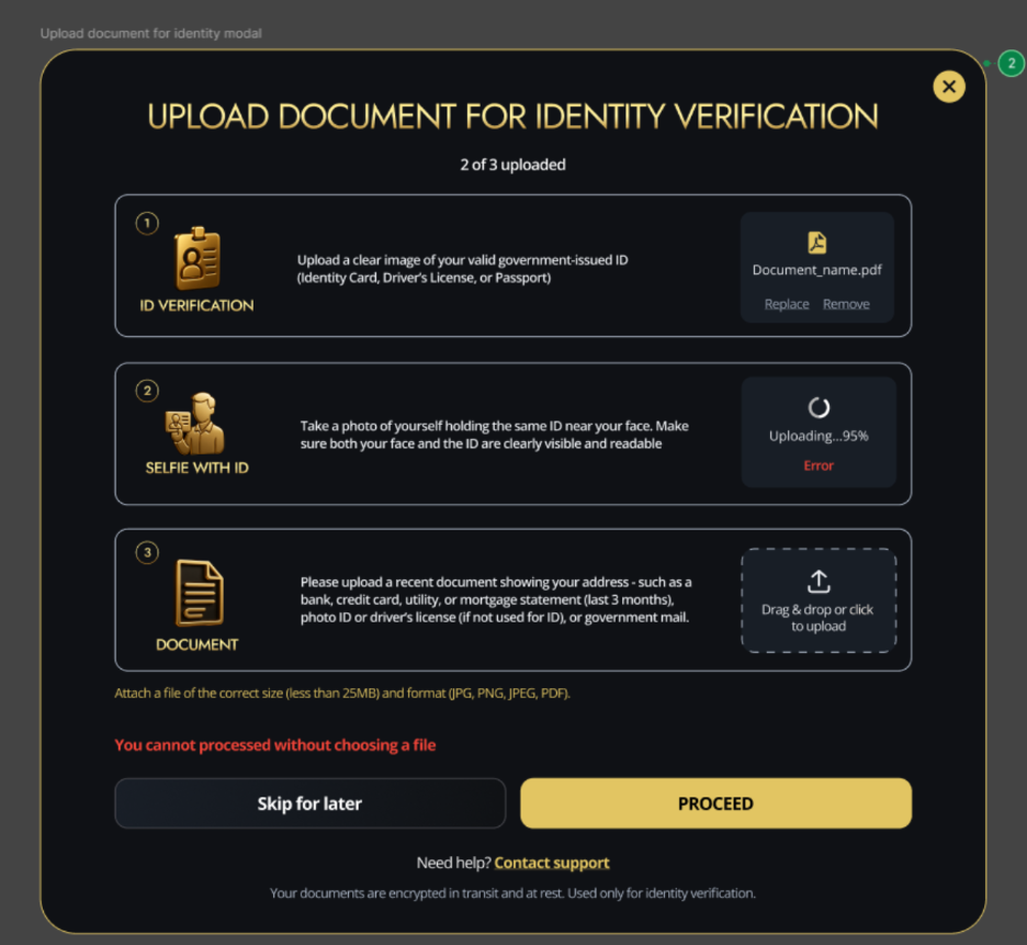 To verify your account, you’ll need to submit the following: